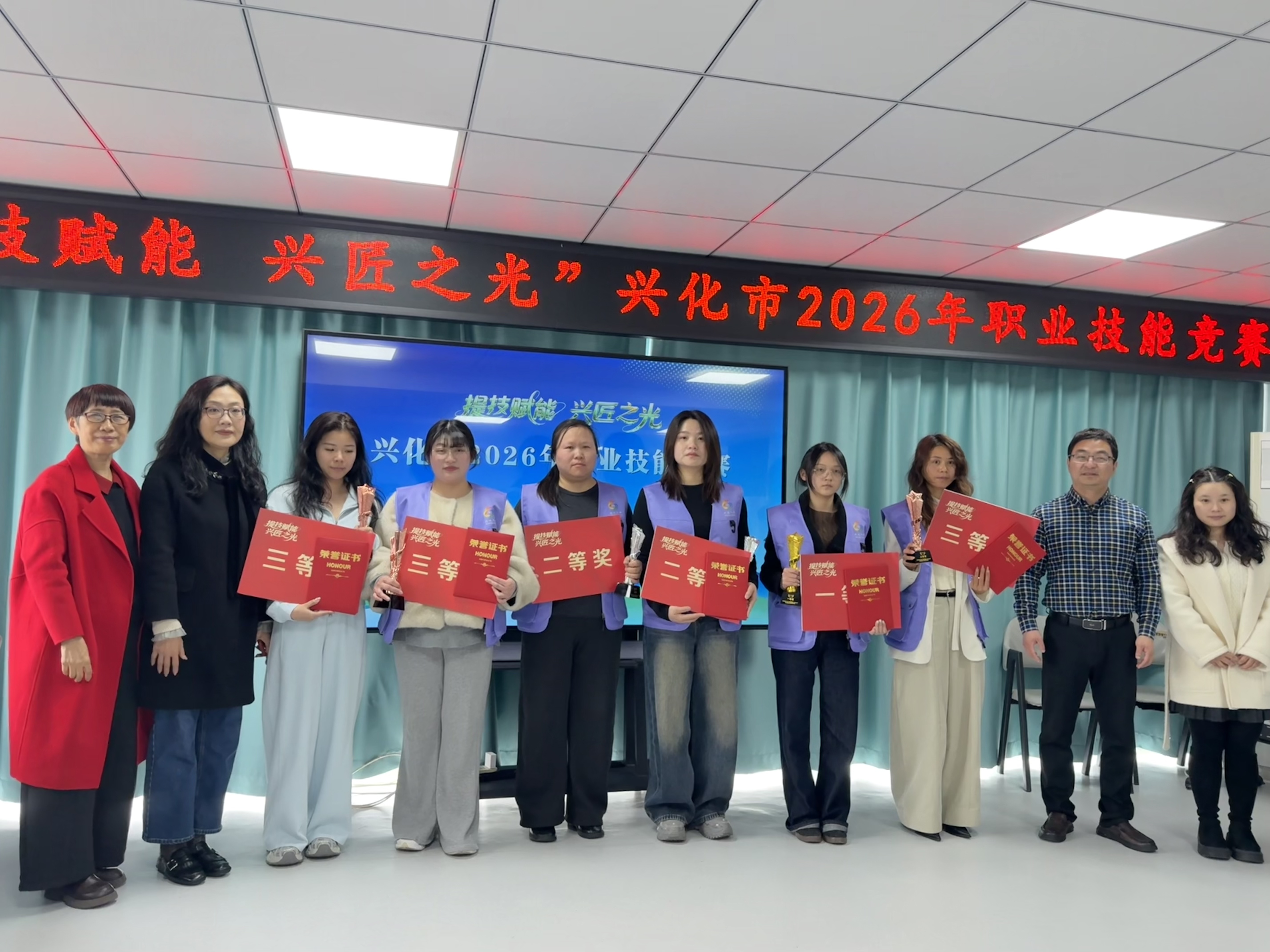 3月31日,兴化市2026年“提技赋能 兴匠之光”职业技能大赛美容组别竞赛圆满落幕。142名参赛选手经过一天激烈角逐,6名选手脱颖而出,荣获一、二、三等奖,131名选手理论、实操双合格,有机会获得美容师高级工证书。
