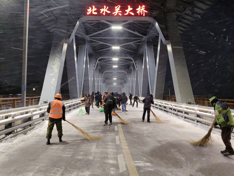 市城管凌晨出击扫雪除冰保障出行安全