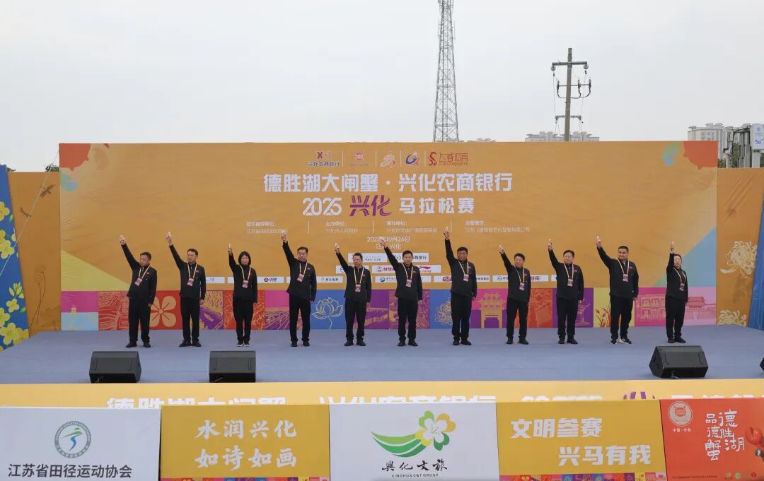 10月26日上午7时30分,德胜湖大闸蟹•兴化农商银行2025兴化马拉松赛鸣枪开跑。市委书记陈锋剑,泰州市体育局局长徐兵,市委副书记、市长邵剑峰,市人大常委会主任沙顺喜,市政协主席徐立华,市领导陈林峰、杨蓓等出席开赛仪式,共同为比赛鸣枪发令。