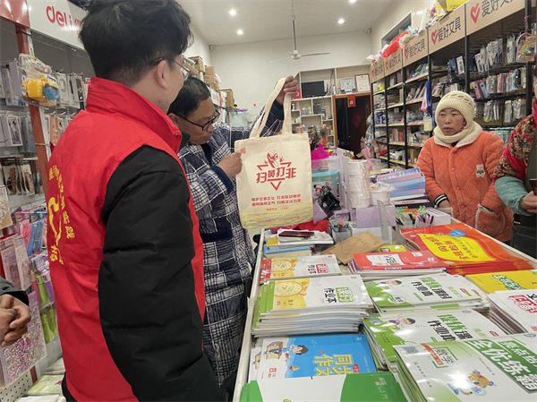 护航“开学季”,护苗伴成长,新学期伊始,兴化市持续开展校园周边“扫黄打非”专项检查,组织对全市校园周边的文具店、书店等商户开展巡查,同时分发“扫黄打非”宣传品,扩大宣传覆盖面,引导更多人关注“绿书签”公众号,参与“绿书签”行动,提升“扫黄打非”知晓率和影响力,形成强有力的宣传声势,净化校园周边文化市场环境,切实护航青少年健康成长。