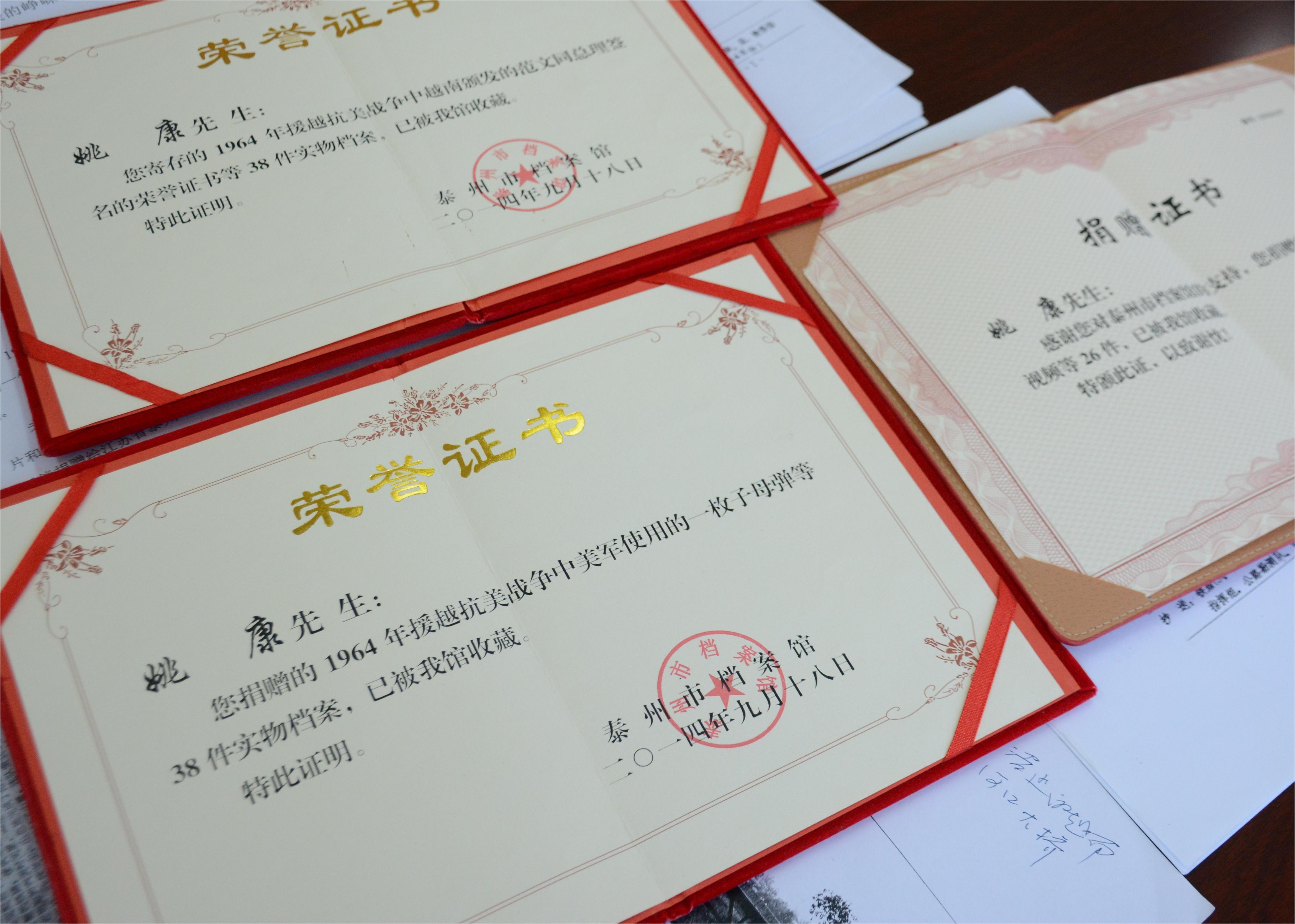 “这些是历史的见证,应该成为教育后人的教材。”姚康坦言,早在2014年,他就曾向泰州市党史方志办公室捐赠76件实物档案。