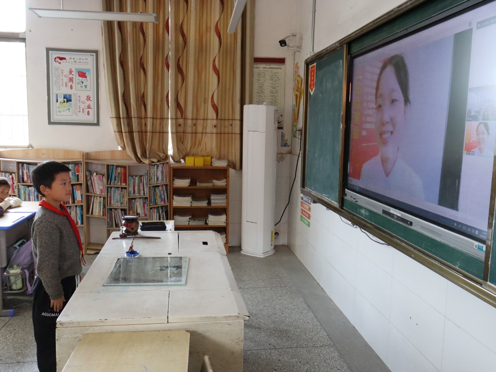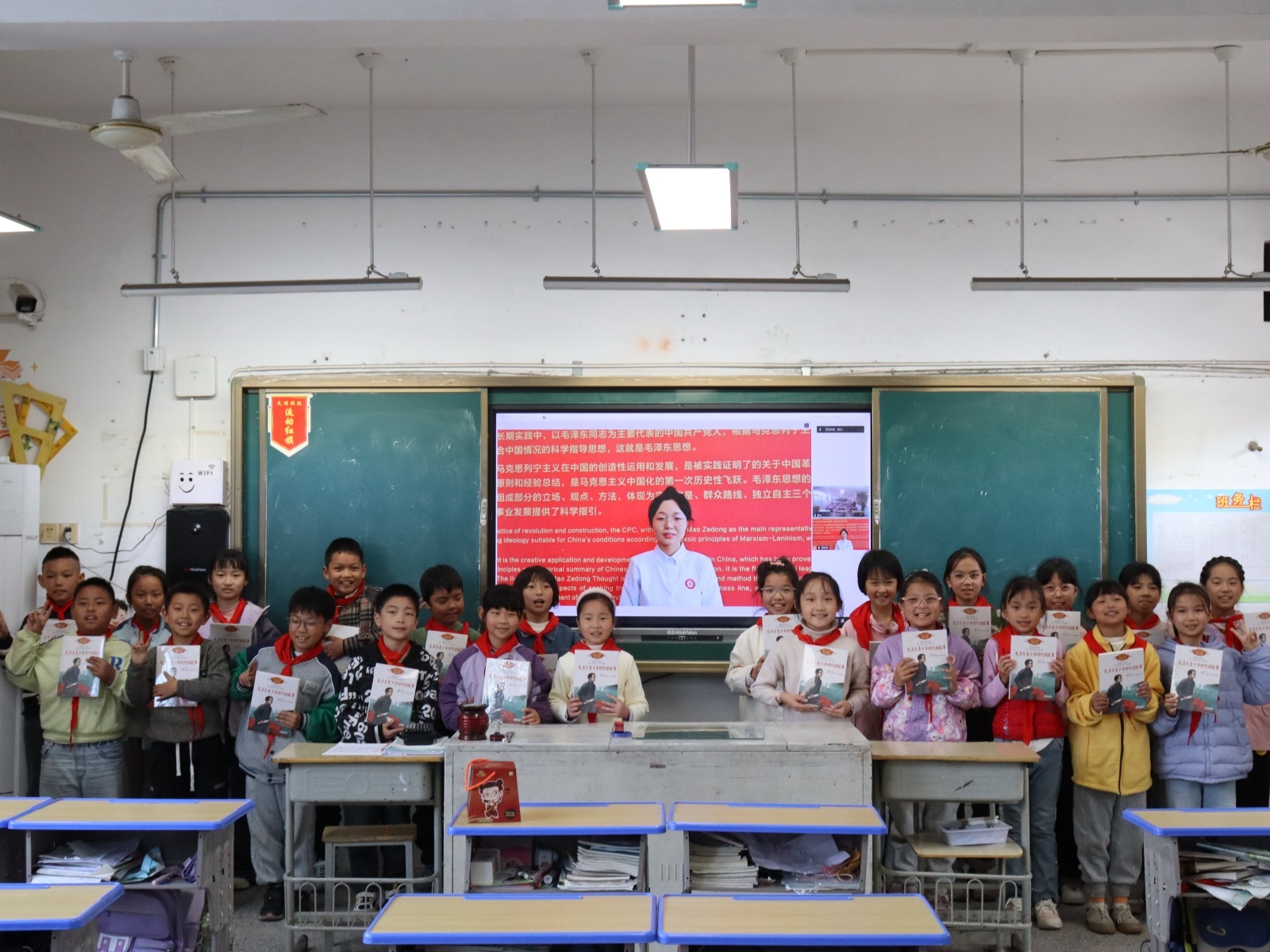 随后的互动环节气氛尤为热烈。孩子们争先恐后举手,踊跃提问:“毛主席的家庭背景和童年生活是怎样的?”“他在长征中扮演了怎样的角色?”……一个个充满童真又意蕴深远的问题,通过云端传向远方。宣讲员一一耐心解答,并不时反问,引导学生深入思考。活动尾声,宣讲员勉励同学们以革命先辈为榜样,树立远大理想,践行“好好学习,天天向上”的精神,努力成长为对国家、对人民、对社会有用的人。