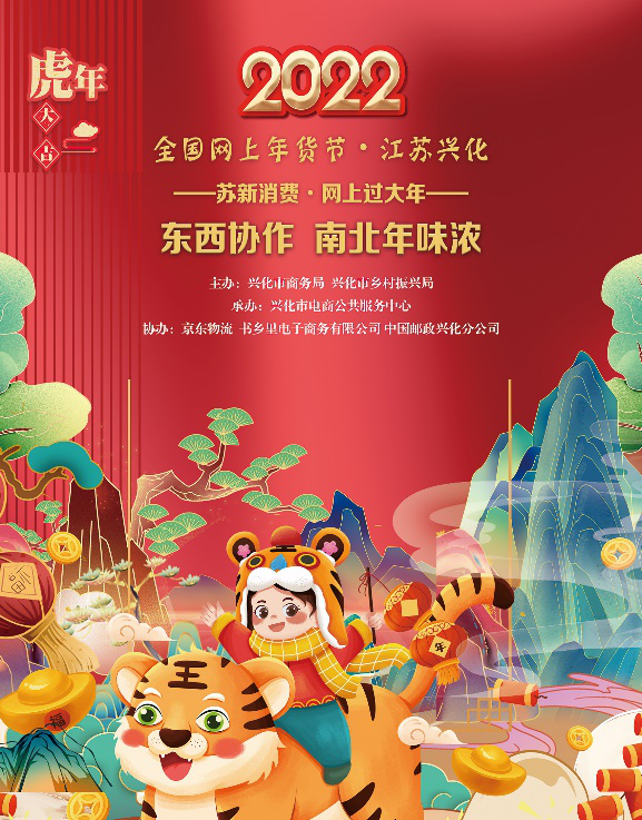 由兴化市商务局、乡村振兴局主办,兴化市电子商务公共服务中心承办,京东物流、书乡里电子商务有限公司、中国邮政兴化分公司协办的三场主题分别为 “兴化特产”、“东西协作”和“消费帮促”的特色直播专场活动将于1月21日-1月23日连续开播。