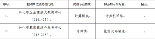 兴化市2024年事业单位公开招聘工作人员专业添加目录