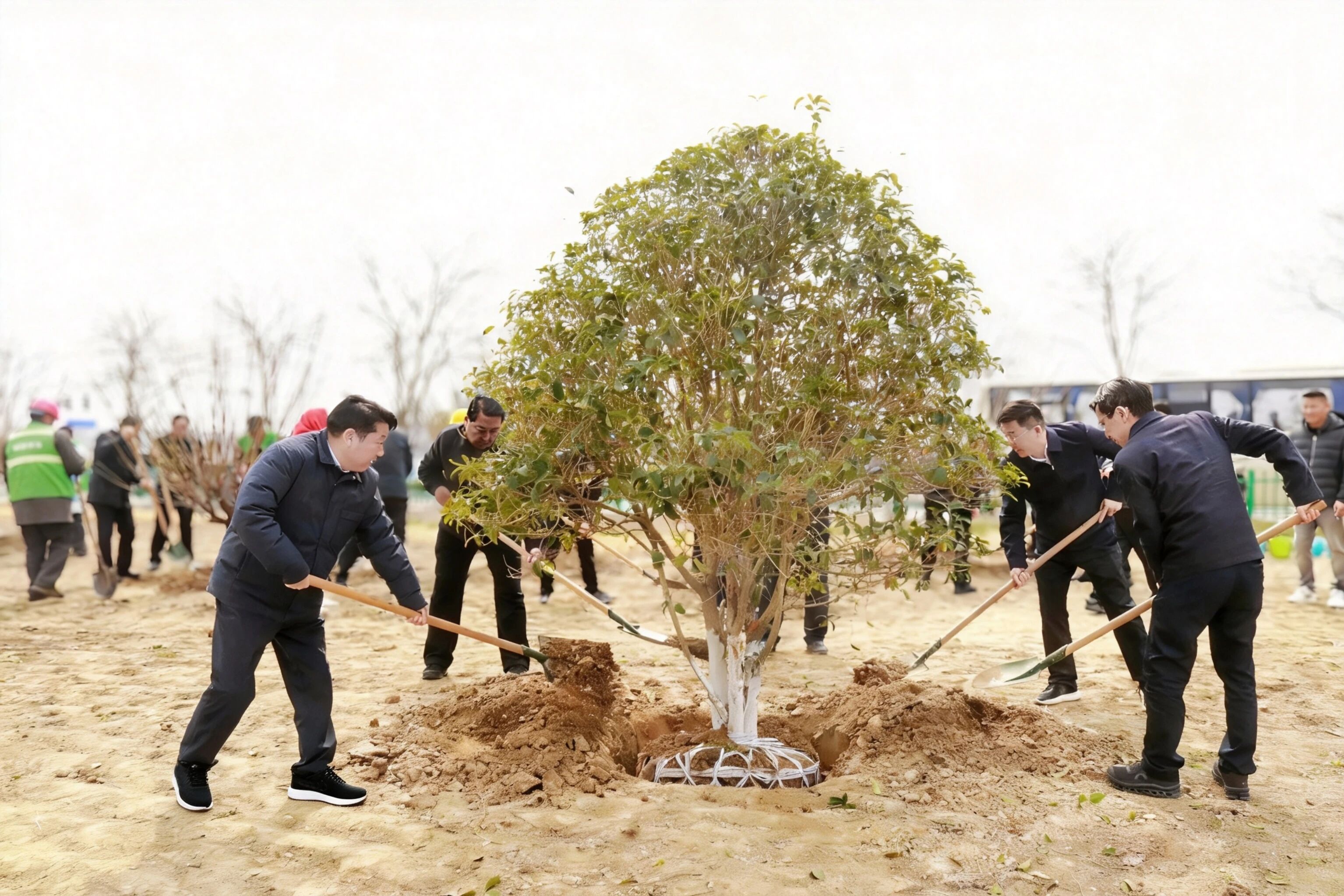 本次义务植树活动以莲溪湖公园东南角为主场地,徐马湿地为分场地。上午11时许,植树现场秩序井然、干劲十足。市领导们轻装简行、手持工具,与140余名干部群众分工协作,大家挥锹铲土、扶苗定干、回填培实、提水浇灌,每个环节规范有序、一丝不苟。经过近一小时的辛勤劳作,新栽植的金桂、鸡爪槭、榉树、早樱、朴树、美人梅等300余株树苗错落有致、迎风挺立,为初春的莲溪湖勾勒出清新灵动的生态画卷。