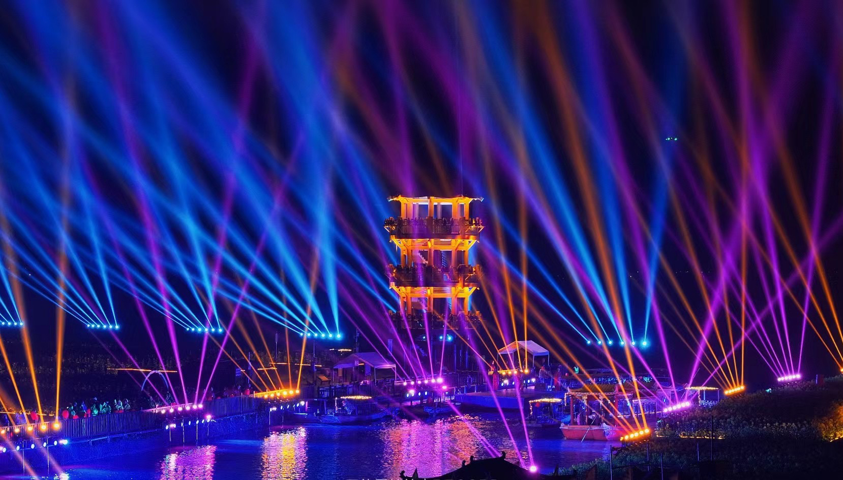 夜幕降临,兴化市千垛菜花景区内万千灯光瞬间亮起,流光溢彩,美轮美奂。今年,千垛菜花景区首次推出夜间实景演出,以水上花海为背景,利用无人机、烟花秀、激光投影等特效手段,融入茅山号子、会船表演、水上婚礼等民俗表演和非遗展示,为游客打造文旅新体验。活动现场,自媒体运营负责人以及网络名人们纷纷拿出专业设备,通过录制、直播等方式将眼前美景“搬”上各大网络平台,带领众多网友了解兴化特色,跟随镜头“云赏”花海。
