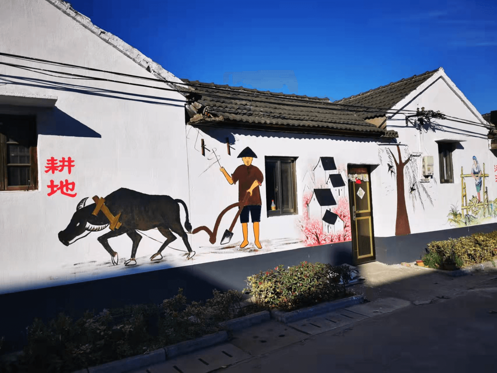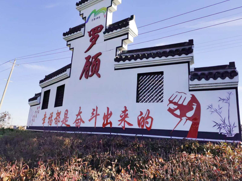 在罗顾村南头的居民小区房屋墙体上,一幅幅栩栩如生富有乡村文化气息的手绘墙画,不仅推动了罗顾村的村容村貌整体提升,为美丽乡村建设工作增添了绚丽的一笔。一幅以农耕文化为主题墙画格外引人注目,一名头戴斗笠的农民正在用牛耕田,上面有割麦、栽秧、打谷等场景,上方安装了两盏中国结路灯。每到晚上常有家长带着孩子们来这里“上课”,让他们了解这些几乎失传的农活,体验“谁知盘中餐,粒粒皆辛苦”的艰辛。就连接送学生的候车亭也设置了英雄模范人物事迹、文明礼仪的宣传牌。设在该村党群服务中心前的古色古香大舞台,成为老百姓的“大世界”,只要不下雨,有两支农民健身队正常在这里表演舞蹈。逢年过节常有老板请来戏班子请乡亲们看戏。