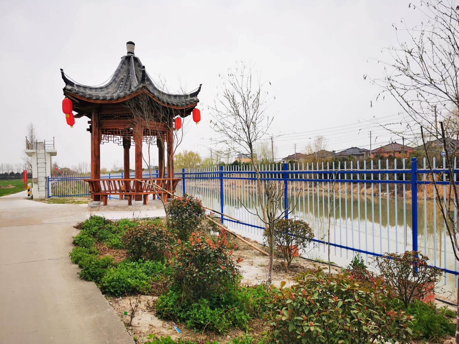 微风轻拂,河面碧波荡漾;整洁的民居旁,一座古色古香的凉亭矗立其中;碧绿的麦田旁,一条笔直的水泥路在人们脚下延伸……阳春三月,走在江苏省泰州市兴化市戴南镇罗顾村乡村大道上,映入眼帘的是一幅美丽乡村的图景。