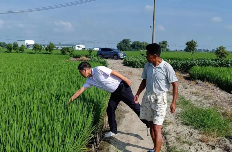 近期,受气温影响,荻垛镇部分水稻遭受了稻瘟和害虫侵袭,严重影响了水稻抽穗及后期生长。为减少水稻遭受病虫危害造成的损失,镇农村工作办公室积极组织农技人员进行实地指导。