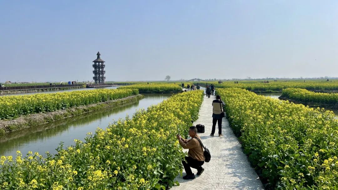 当天上午九时,千垛景区准时开门迎客。尽管当前油菜花尚处初花期,尚未形成铺天盖地的金色盛景,但星星点点的嫩黄花苞跃于水陌之间,为这片“双遗产”地平添了几分含蓄与灵动。游客或漫步花间小径,或乘船穿行水巷,在若有若无的清香中,抢先领略“河有万弯多碧水,田无一垛不黄花”的诗意前奏。
