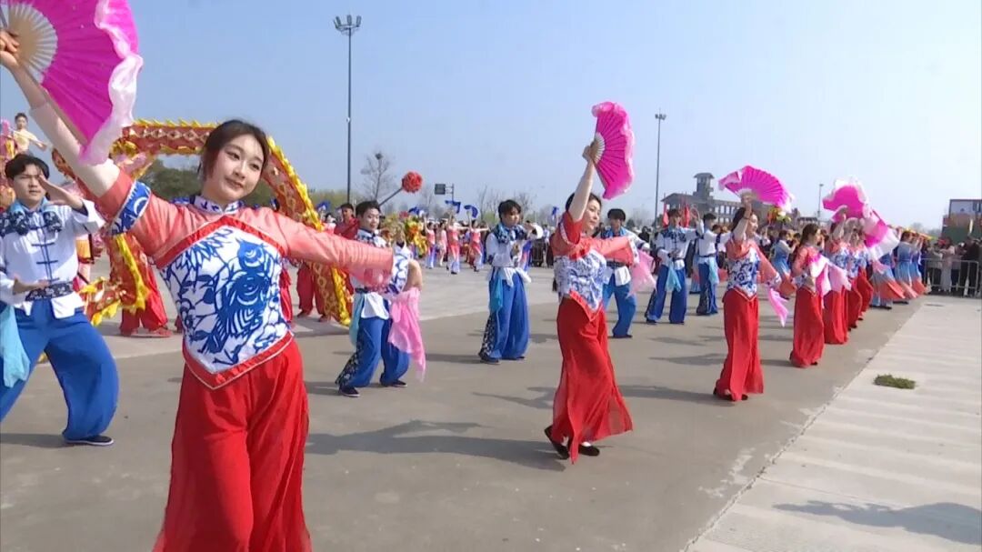 伴随活动启动,系列民俗文化展演也相继登场。当天下午,“茉莉花开·2026千垛菜花民俗踩街活动”千垛景区专场展演火热开场。数百人组成的表演队伍在景区广场集中亮相,瞬间点燃现场氛围,欢笑声、喝彩声此起彼伏。广场中央,舞龙表演气势磅礴,四条彩龙时而昂首腾飞,时而蜿蜒盘旋,演绎“龙腾盛世”的恢宏场景;林湖秧歌队身着鲜艳服饰,伴着悠扬的《林湖秧歌》踏歌起舞,眉眼含笑,步伐灵动,尽显水乡儿女的质朴与热情;腰鼓队气势如虹,鼓点铿锵,彩绸飞舞,赢得阵阵掌声。此外,清脆悦耳的打莲湘,摇曳轻盈的花船花担等民俗节目轮番上演,各展风采。随后,表演队伍自广场出发,沿过街天桥、木栈道、观景塔、船舫广场一路行进,为游客呈现了一场“一景一特色、一路一精彩”的沉浸式水乡民俗盛宴。