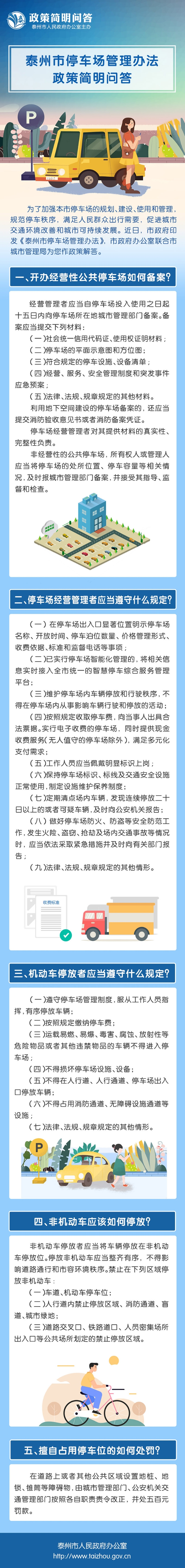 2020年泰州市政策简明问答《泰州市停车场管理办法政策简明问答》